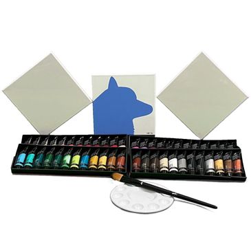 The main mediums I use in my artwork are various colors of acrylics, which are used on 8x8 canvases.